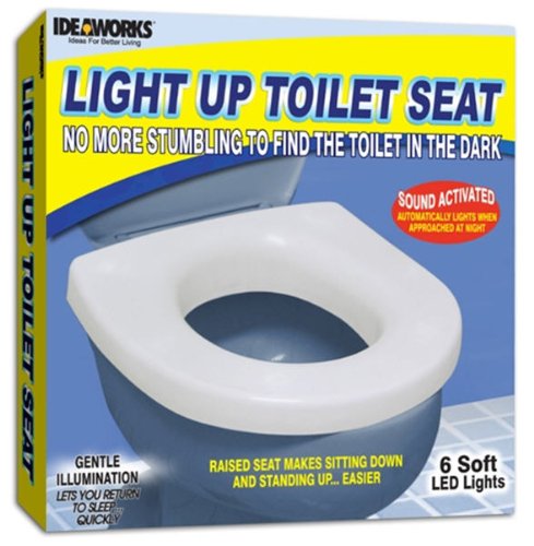 Ideaworks JB5633 Light Up Toilet Seat>>>> Only $29.95 Best Buy Sound activated. eliminates the need for bright overhead lights that can disturb others. illuminates whenever someone approaches. white molded plastic for durability and easy cleaning. raised seat makes sitting down and standing up easier. easily slips onto existing toiletopening, no tools required.