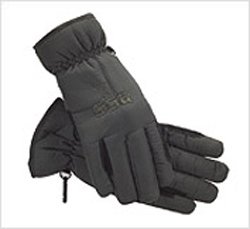 Windproof, water resistant with a soft micro fiber finish and leather palm and finger reinforcement, thinsulate lined. Great for winter riding and working in the barn!